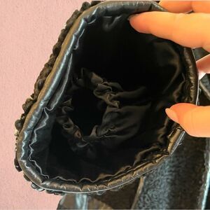 Beautiful vintage 1960s Hudson’s Bay Persian lambs wool coat. Gorgeous style, quality made classic coat. All black with curly lambs wool and leather piping. Bell sleeves, fold over collar, two hook closures, pockets. No size tag but fits from a small to large due to the style. 60+ years old, and in incredible condition.