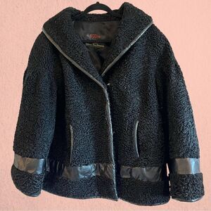 Vintage 1960s Hudson Bay black Persian lamb wool coat leather accents