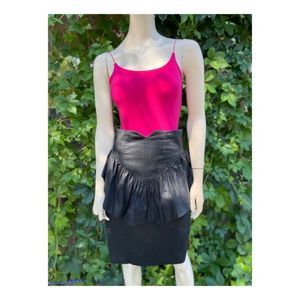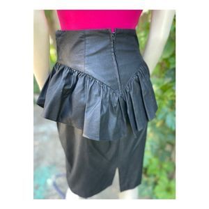 Vintage 80s Black Peplum Pencil Skirt 100% Cotton Sz 9