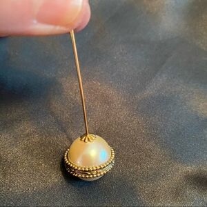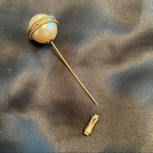 This is a classic lapel pin. It’s in great shape and looks substantial. It kind of looks regal! Can also be used to pin a scarf to your lapel, or on a hat. So many options for this classic beauty!