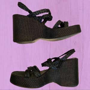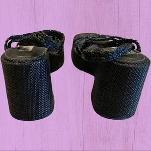 Amazing 90s Steve Madden chunky platforms! Black woven material, chunky platform 3.5” heel with square toe. There is no size on them but they are a size 7. 9.5” sole length. They’re in great used condition, and still ready to rock!