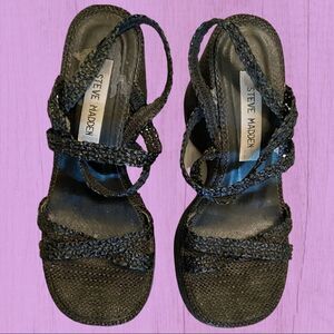Vintage 90s Steve Madden chunky black square toe platform strappy sandals