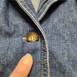One button is broken in half as pictured - some minor wear on elbows as pictured- otherwise good condition.