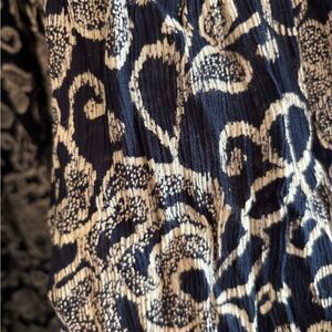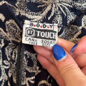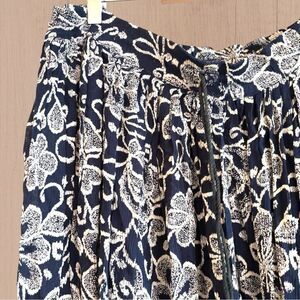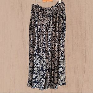 Vintage 90s maxi broomstick skirt. Free size, adjustable waist, super flowy bohemain style crepe rayon fabric in navy blue with cream floral print. Coastal cowgirl. I think this would best fit medium-1xl. Great condition.