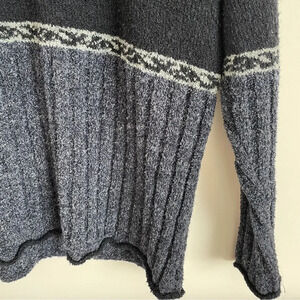 Vintage 90s oversized navy and heather blue knit grandpa sweater with V neck.