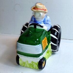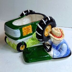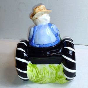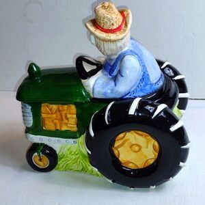 Vintage AMC Farmer & Tractor Musical Ceramic Cookie Jar "Farmer in the Dell"