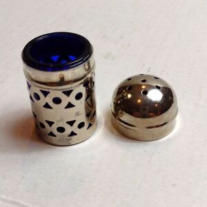 Vintage APEX EPNS Cobalt Glass Insert Salt & Pepper Shakers Set of 2