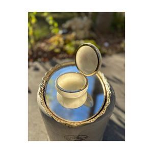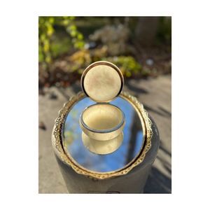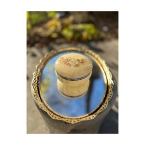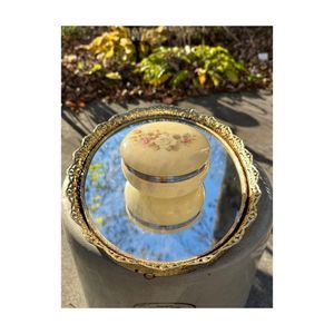 Vintage Alabaster Round Trinket Box Hinged Lid Floral Print