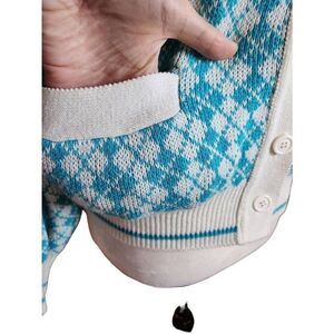 Vintage Argyle Cardigan Sweater Button Front Pockets Medium 60s 70s Golf Quirky
