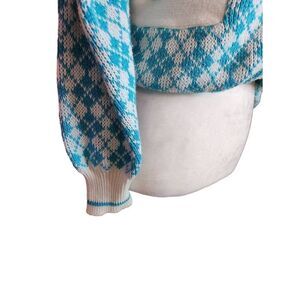 Vintage Argyle Cardigan Sweater Button Front Pockets Medium 60s 70s Golf Quirky