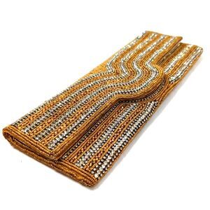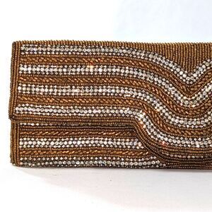 Stunning gold & rhinestone vintage clutch. All beading is secure, intact. All rhinestones are secure intact. Quite literally a 1920's work of art deco. Absolutely awesome little clutch. I was trying to catch how sparkly it is in the video.