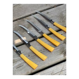 Vintage Bakelight Handle Steak Knife Set x 6 Butterscotch Washington Forge Steel