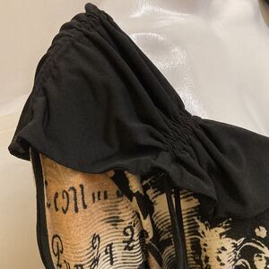 Vintage Bali Maximalist Artwear Unique Beige Black Ruched Zip-Up Shacket