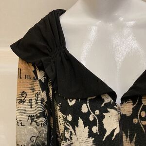 Vintage Bali Maximalist Artwear Unique Beige Black Ruched Zip Up Shacket