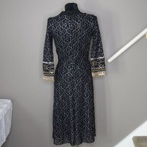 Vintage Betsey Johnson Embroidered Black Wrap Midi Dress Sz M