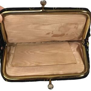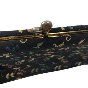 Vintage Black Embroidered Evening Clutch Purse with Kiss Lock Fastener
