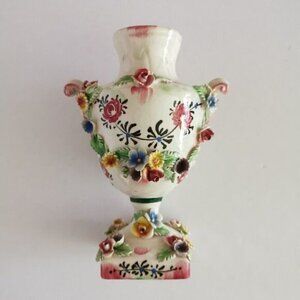 Vintage Capodimonte Style Small 7" Vase, CHIPPED Pedestal Florals Handmade Italy
