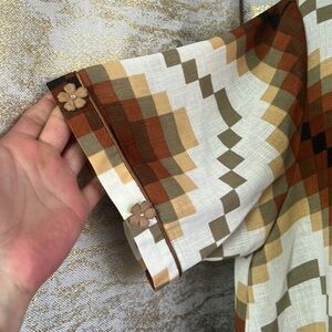 - Pre-Loved , in Good Used Vintage condition (on the left sleeve cuff the flower details are missing please see the last pictures)no size tag so please review the measurements