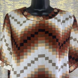 Vintage🧚♀️Chance Zigzag Print Short Sleeve Blouse