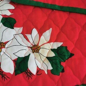 Vintage Christmas Poinsettia Fabric Placemats Set of 4, Quilted Table Settings 12" x 19" Red & Green Holiday Party