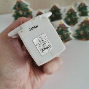Vintage Christmas Tree Ceramic Napkin Rings & Candle Holder Set, Abbott Japan