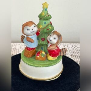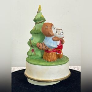 Vintage Christmas rotating music box || Christmas beavers around tree music box