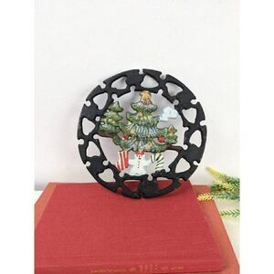 Vintage Christmas metal trivet spoon rest pot holder
