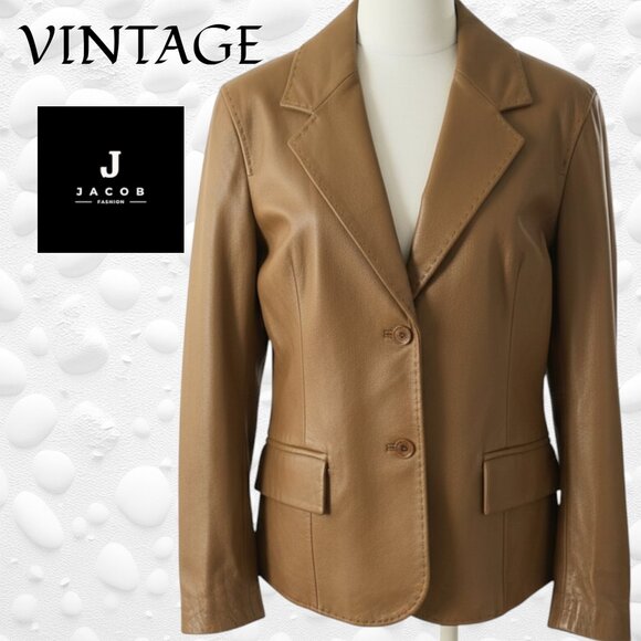 Vintage‑Era JACOB Caramel 100% Leather Jacket – L - NWT