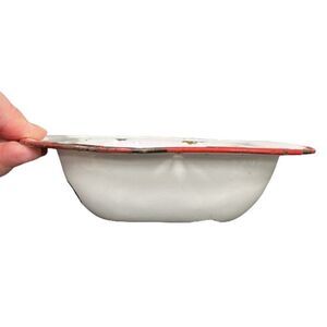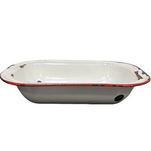 Vintage Farmhouse Enamelware Roasting Pan White with Red Band Trim.