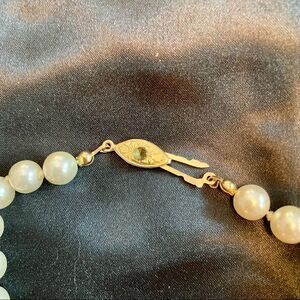 Everyone needs a pair of faux pearls. This is a good set with no scrapes or bruises. The metal fish eye hook closure makes them almost seem real! Pop these on and look like your regal self.