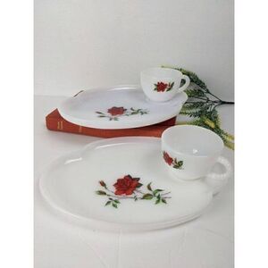 Vintage Federal Glass Snack plate Rosecrest, Red rose