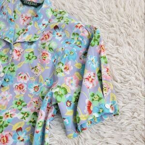 Super cute floral print blouse! Nice sleeve detail. Very lightly padded shoulder. See measurements.