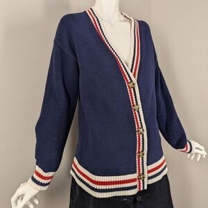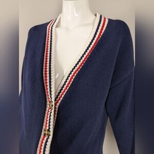 Vintage GAP Cardigan XS Cotton Navy Red White Preppy Button Down Striped Trim