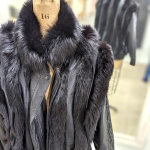 Vintage Genuine Fox Fur Trimmed Genuine Leather Coat XL