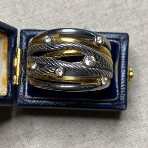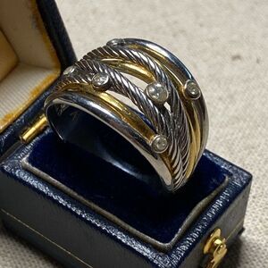 A timeless classic crossover ring beautifully adorned with CZs and yellow gold plated accents. Similar to David Yurmans style but for a fraction of the price! Designed by Canadian brand Avon!