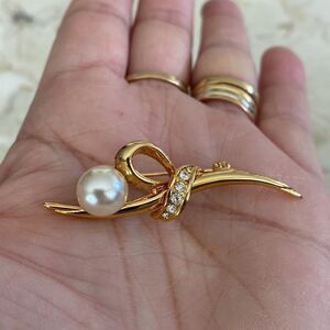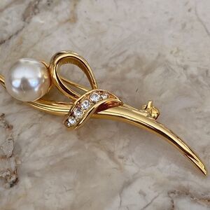 In excellent preowned condition beautiful vintage gold tone brooch featuring a single faux pearl.