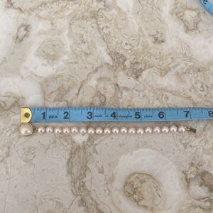 Pearls will never go out of style! Beautiful pair of high quality costume jewelry, a timeless faux pearl bracelet, each pearl is lustrous and individually knotted. Plus large gold tone, faux pearl and crystals brooch in the shape of a bow and featuring a gorgeous teardrop drop pearl.