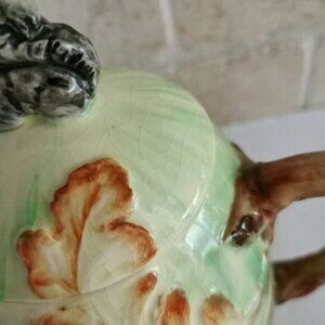 Vintage Squirrel Oak Leaves Teapot CRAZING Handpainted Ceramic Black Squirrel Green Tree Branches Marutomoware Japan