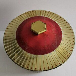 Vintage Horners Toffees Red and Gold Tin - Made in England Tin Container Round Bucket with Lid Retro Floral Decorative Storage