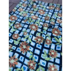 Eye-catching multicolor print: navy, sky blue, white, orange, and green