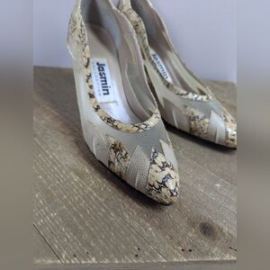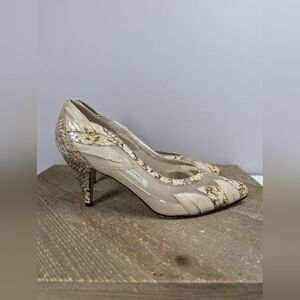 Vintage Jasmin Collection Snakeskin Mesh Heels Sz 7 | 3” Pointed Toe Pumps Glam