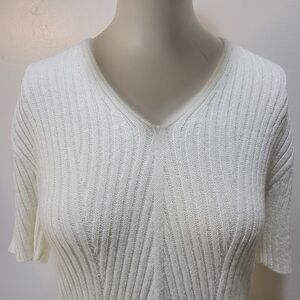Vintage Jessica sport knitted v neck ribbed sweater tee in a sweet ivory colour. No stains or tears or signs of wear.