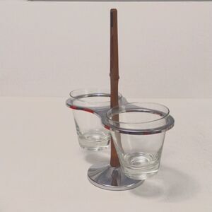 Vintage Kromex MCM Chrome Carousel 2 Condiment Server with Walnut Trim