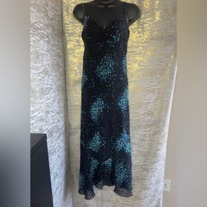 Vintage🧚♀️La Belle Women’s Navy/Blue Geometric Print Midi Length Dress