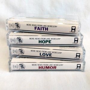 Vintage 1989 More News from Lake Wobegon by Garrison Keillor-4 Cassette Tapes Stories Of Everyday Life In Lake Wobegon. Total Play Time-4 Hours & 51 Minutes. Cassettes Are In Very Good Condition, Box Has Ware/Staining Both Inside and Out.