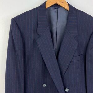 Vintage OGGI Men’s 42R Navy Blue Red Striped 100% Virgin Wool Suit Jacket Coat