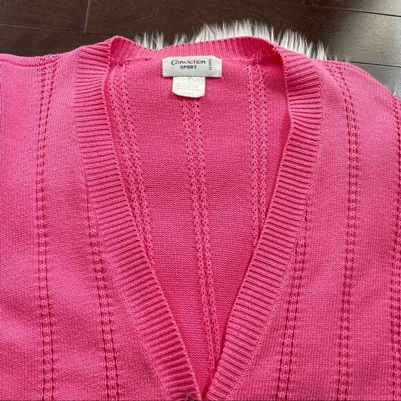 Vintage Oversize Pink Cotton Ribbed button Front cardigan Sz Small