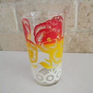 Vintage Pansies Drinking Glass, Red Yellow Collectible Juice Glass Florals Flowers Kitchen Decor Glass Cup Tumbler