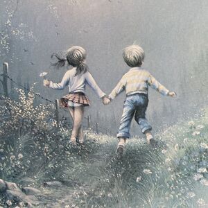 Vintage Pastel Boy Girl Countryside Prints Boho Gallery Wall Oval Gold Frames