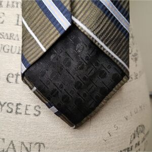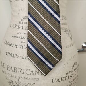 Green, Blue & White Diagonal Stripe Men's Tie, by Perry Ellis Portfolio.